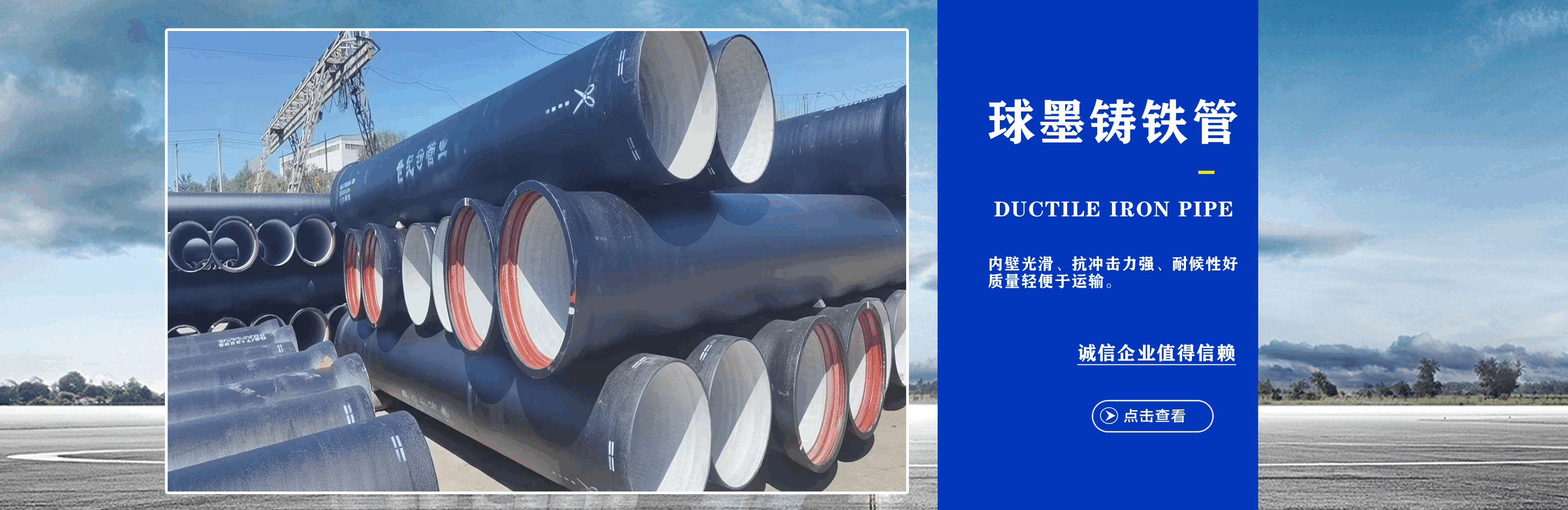 青島世紀球墨鑄鐵管業(yè)有限公司主營DN80mm~DN2600mm球墨鑄鐵管,給排水球墨鑄鐵管,球墨鑄鐵頂管,自錨式球墨鑄鐵管,球墨鑄鐵保溫管,球墨鑄鐵管件,柔性排水鑄鐵管,球墨鑄鐵井蓋,雨篦子等產(chǎn)品。我公司實力雄厚,常備萬噸庫存,貨源充足,規(guī)格齊全,發(fā)貨速度快! 青島世紀管業(yè)嚴格執(zhí)行“精益求精,增強顧客滿意;精益求進,實現(xiàn)持續(xù)發(fā)展”的質(zhì)量方針,建立起完善的售前咨詢、售中安裝、售后回訪服務體系,真誠地與用戶建立起長期密切合作關(guān)系。優(yōu)異的產(chǎn)品和良好服務受到廣大用戶的青睞,是您值得尊敬和信賴的合作伙伴。 青島世紀球墨鑄鐵管業(yè)始終堅持“誠信立業(yè),追求卓越,合作共贏,共同發(fā)展”,竭誠歡迎各界朋友來廠參觀指導,洽談業(yè)務。我們愿與您攜手共進,互惠雙贏,共創(chuàng)未來!...